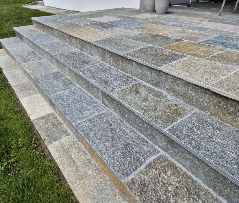 Stufenpodest aus Quarzit polygonal